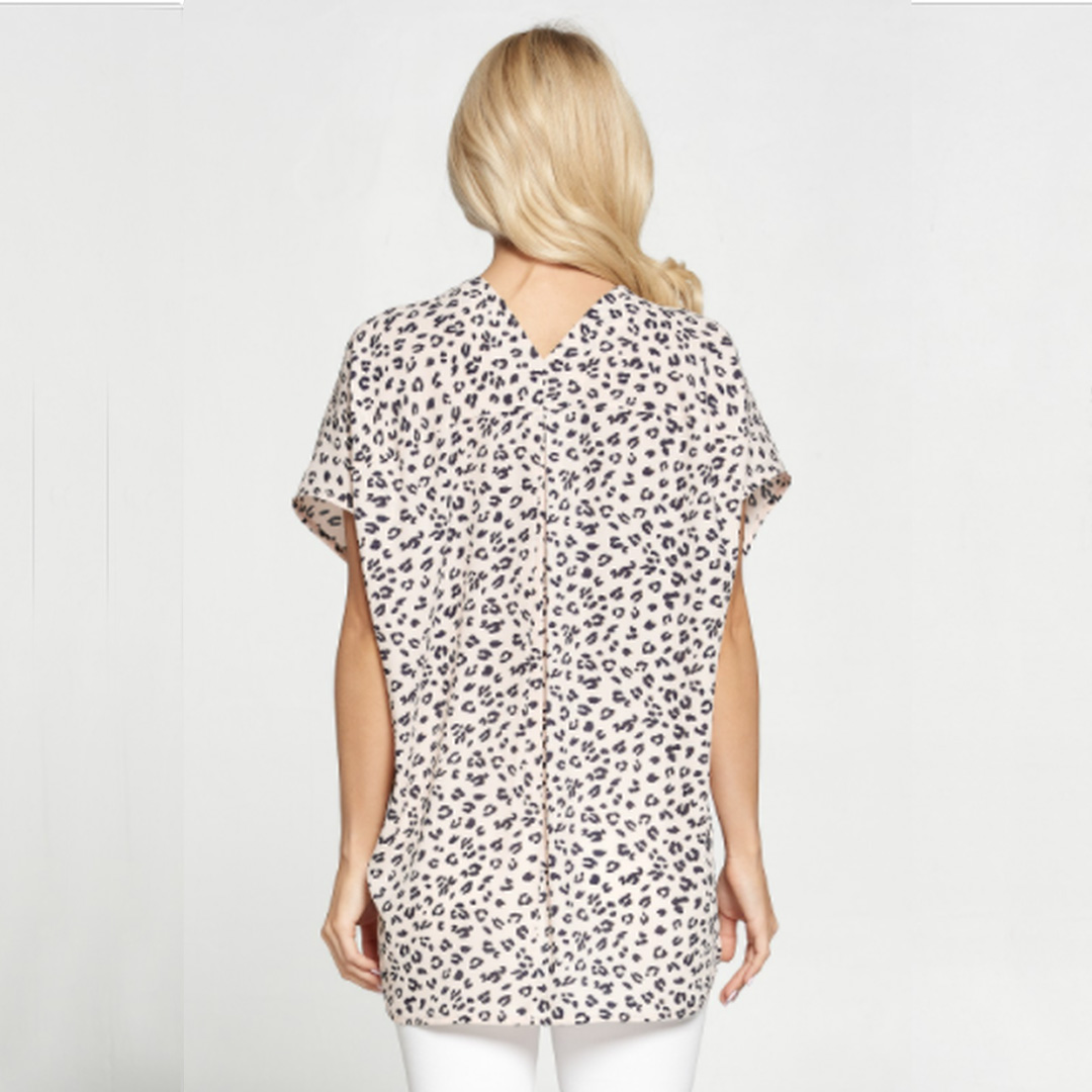Leopard Clean V-Neck Wd Top con aberturas laterales. 100% POLIÉSTER. Colores: Rubor / Negro / Taupe y Rosa / Taupe / Marfil