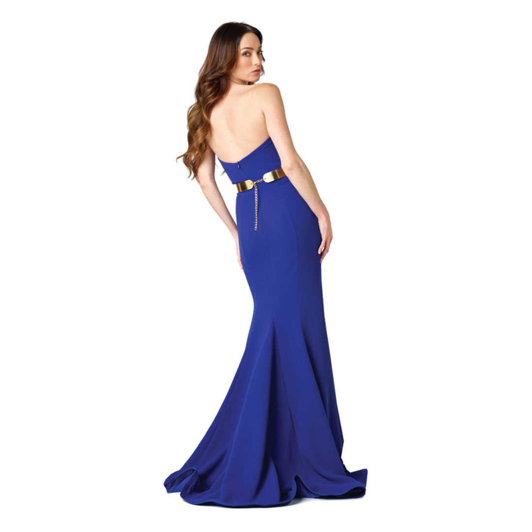 DEEP V JERSEY RHINESTONE T BACK GOWN