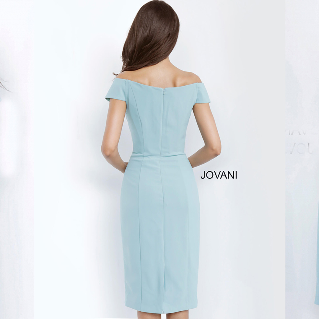 JOVANIJovani 68767 Seafoam Off the Shoulder Knee Length Cocktail Dress