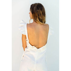 Con una espalda escotada y volantes en todos los tirantes, este excepcional mono es casi perfecto para cualquier ocasión en la que desees usarlo.
