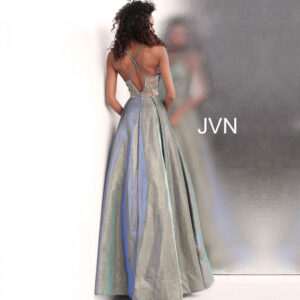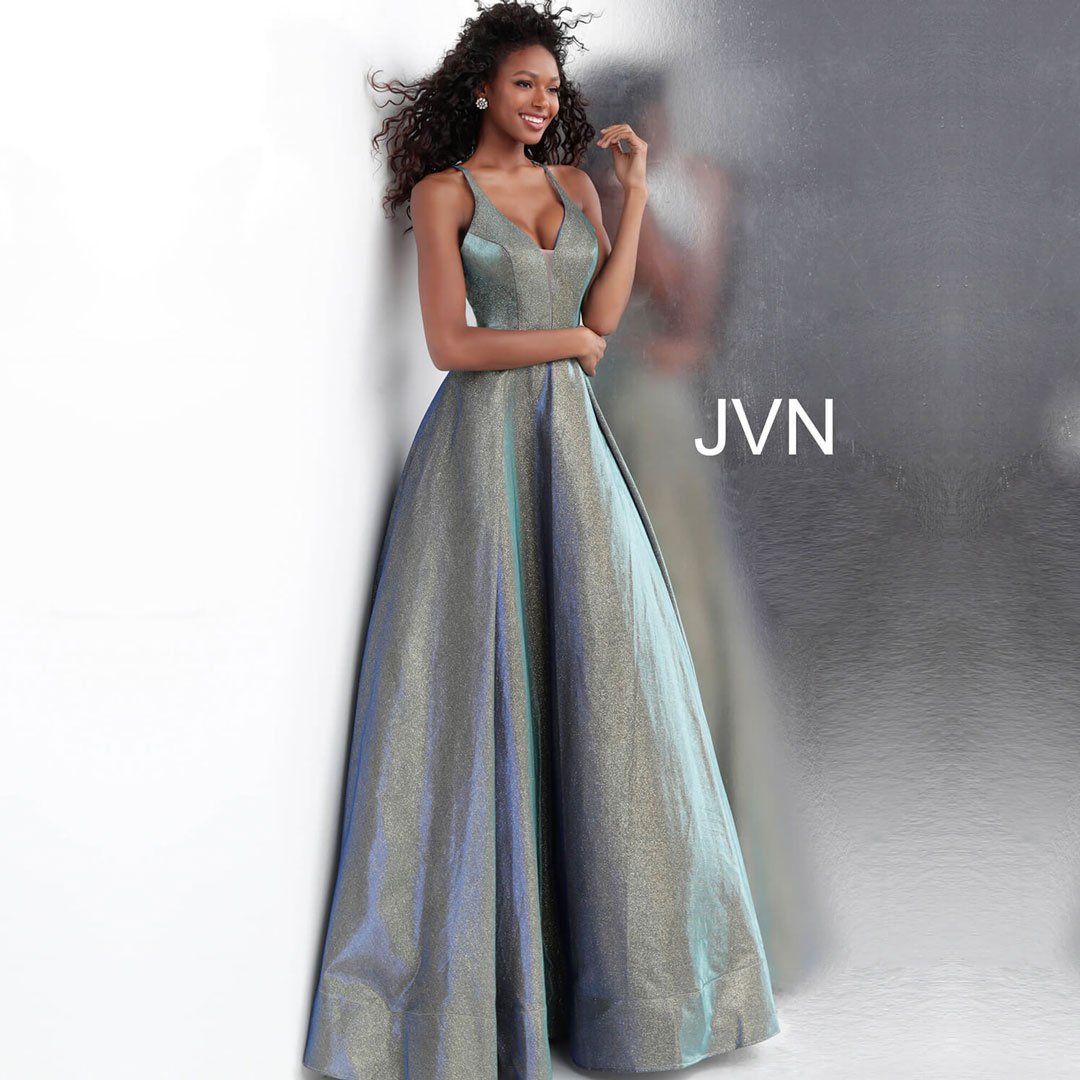 JVN65851 Green Blue Criss Cross Back A Line Prom Gown