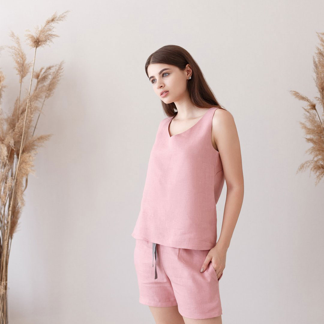 CONJUNTO CORTO Y CAMISA LINO ROSA