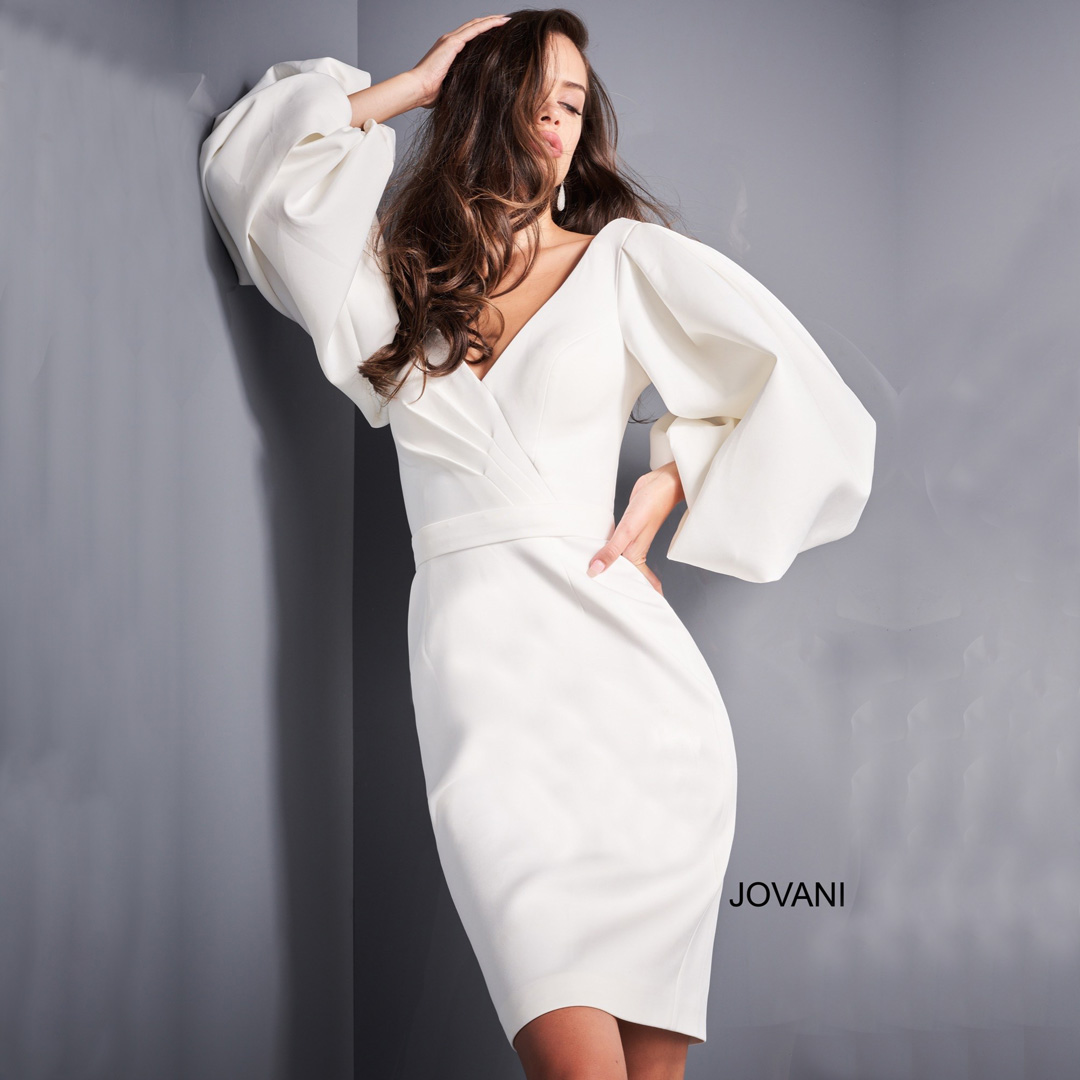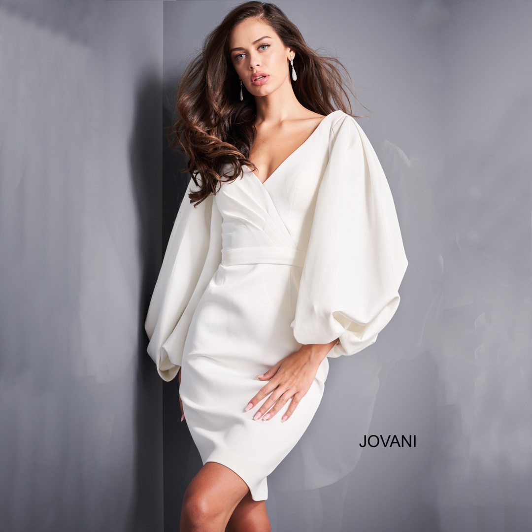 Jovani 04370 Vestido de cóctel de manga larga blanco