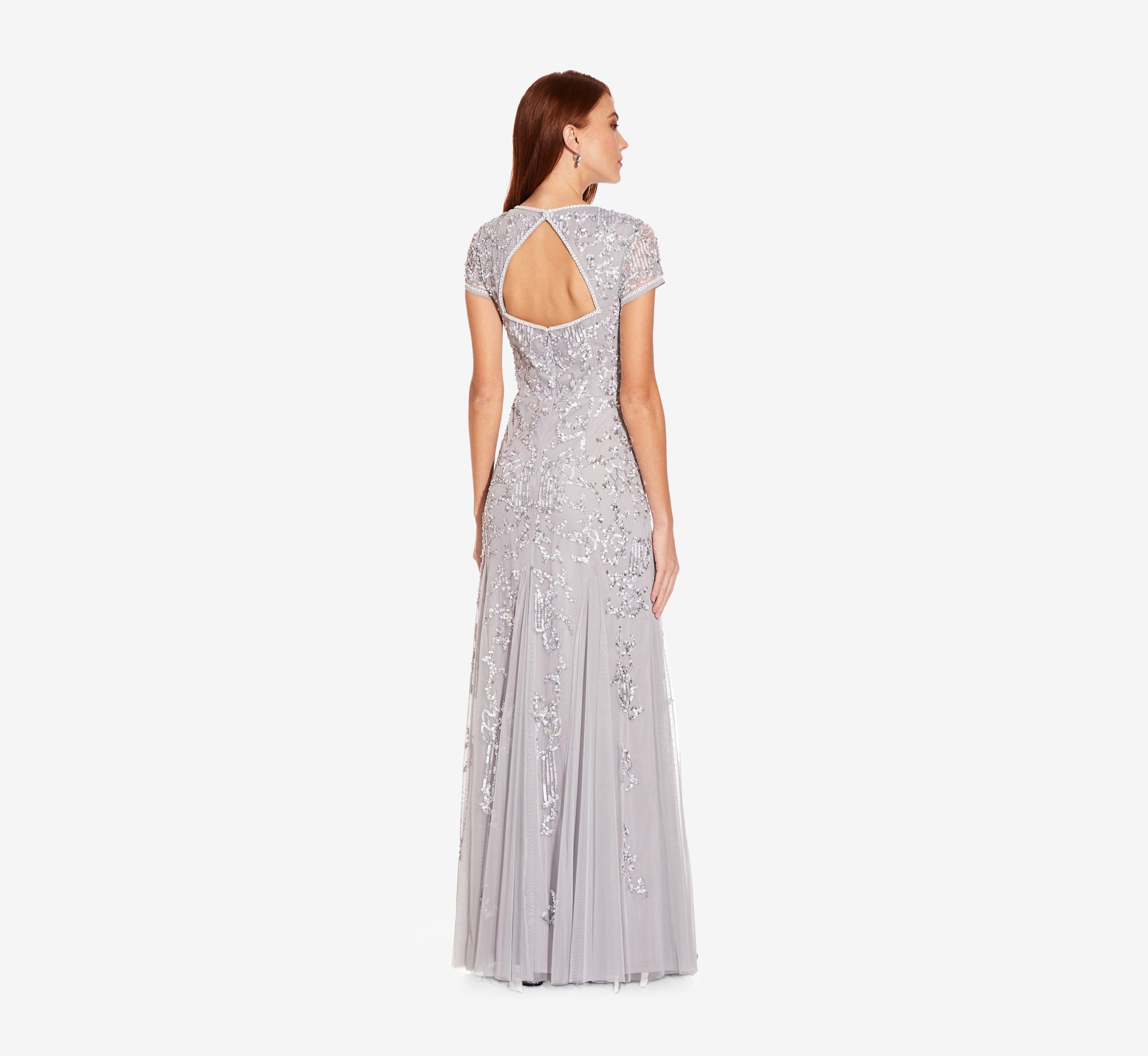 Choose a romantic look for your next formal event when you reach for this breathtaking special occasion dress. This fabulous formal dress features a stunning sweetheart neckline, beaded cap sleeves, and a sparkling bodice with criss-cross detail. A long, flowing skirt with tulle pleats and embellishment, and a back zipper closure complete the details on this elegant evening dress. Wear this exquisite party dress with stud earrings, a metallic clutch, and a gorgeous pair of strappy heels to create a memorable look for your next big night.
