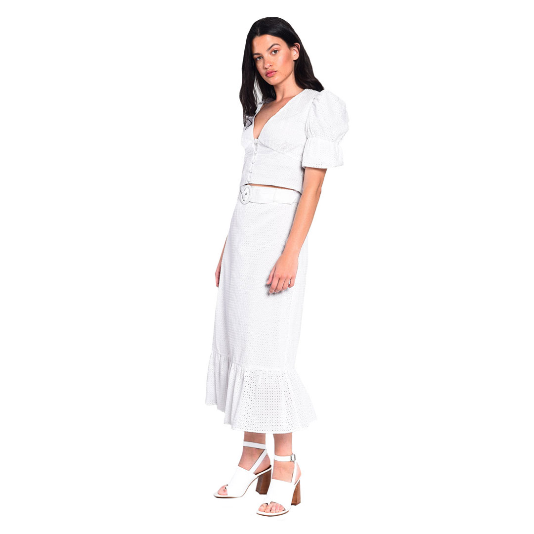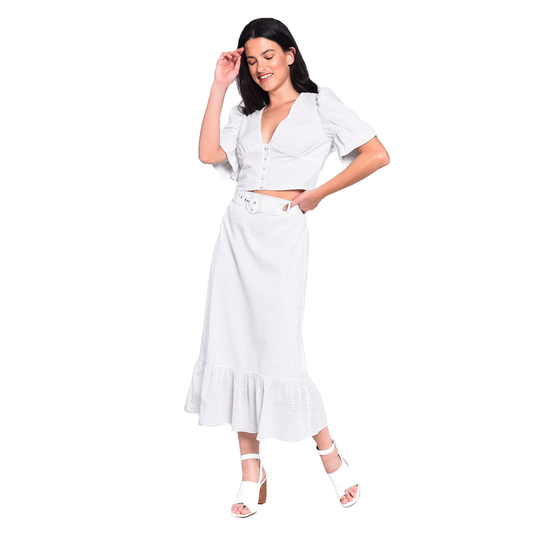 Glamorosa – Falda GC0258. Falda midi holgada, en línea alfa y pliegues en la parte inferior. Úselo con su par de sandalias favoritas y atrape todos los looks sobre usted, en sus salidas de verano. Composición: 100% algodón, forro: 100% viscosa.