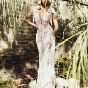 SLEEVELESS DEEP V LONG CORAL GOWN