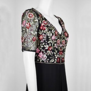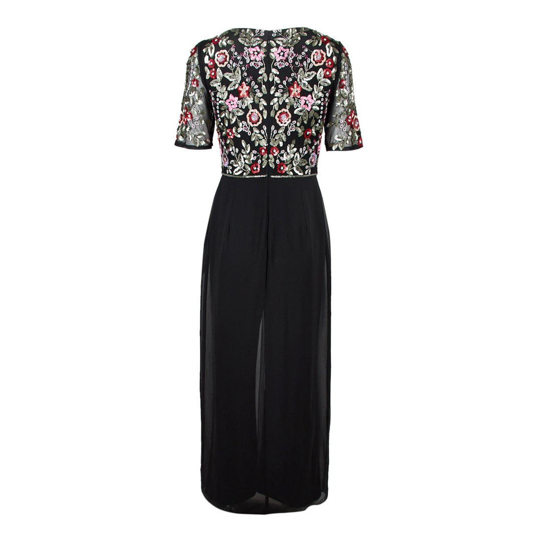 Adrianna Papell V-Neck Short Sleeve Zipper Back Embellished Embroidered Mesh Chiffon Dress
