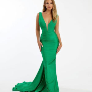 Sparkling floral tendrils cascade down the length of an Adrianna Papell gown designed to glisten at special occasions.