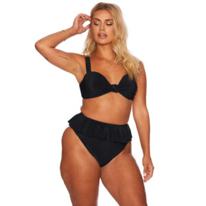 The Daisy Bottom is our new high-waisted swim bottom featuring a ruffle detail along the waistband in our black ultra soft ribbed fabric. This bottom offers moderate coverage with just the right amount of cheekiness. Pair with The Sophia Top or mix and match with one of our black ribbed tops.