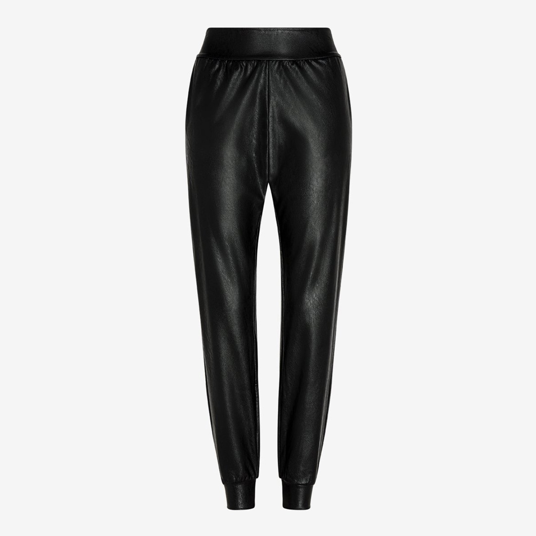 These faux leather jogger pants are the ultimate combination of cozy and chic. Made with commando’s signature four-way stretch faux leather, and cut with a relaxed fit, these joggers can easily be styled up or down.