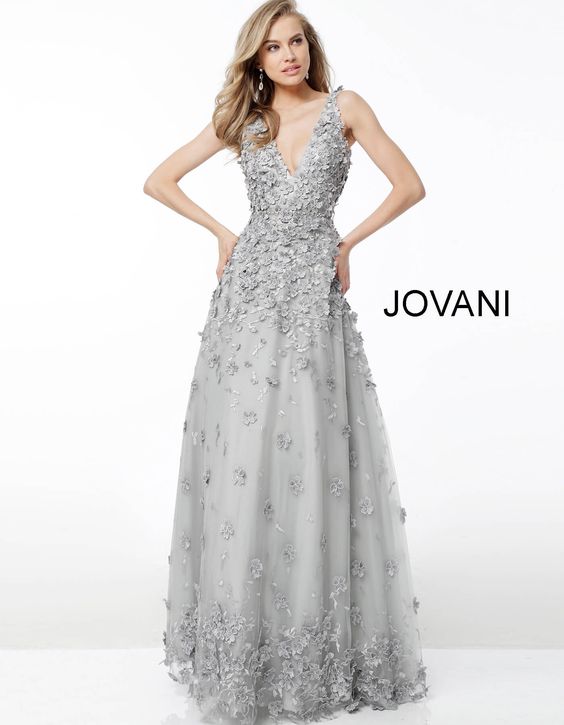 Sparkling blend of eye-catching glamor and opulent texture and three-dimensional floral applique shape dazzles a casual romantic wedding or prom