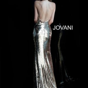 You will look as though you’re ready to command the runway with this sequined dress. The Jovani formal evening gown is available in gold or black sequins. This is a show-stopper with the deep slit. Additionally, the halter-style V-neck Jovani dress adds a plummeting neckline that is sure to help you get noticed. The fitted bodice with the trumpet-shaped skirt ensures that you’re able to show off all of your sleek curves. The natural waistline ensures that there’s no bunching involved. A sweep train allows you to make quite the entrance at your event.