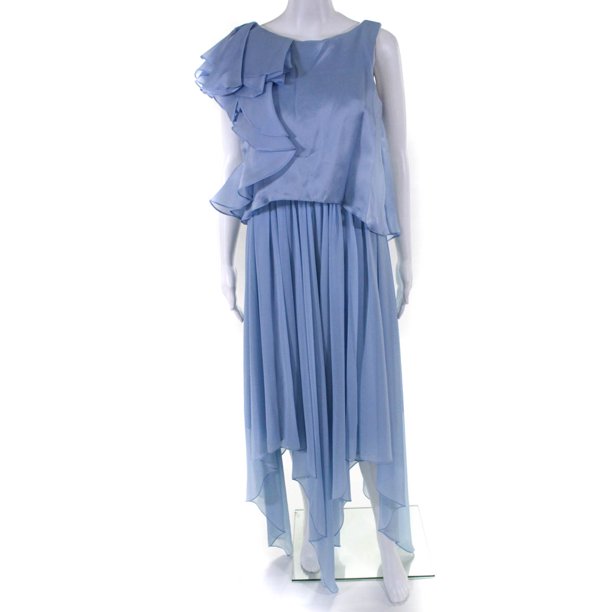 Georgette assymetrical gown with popover and draped shoulder detail