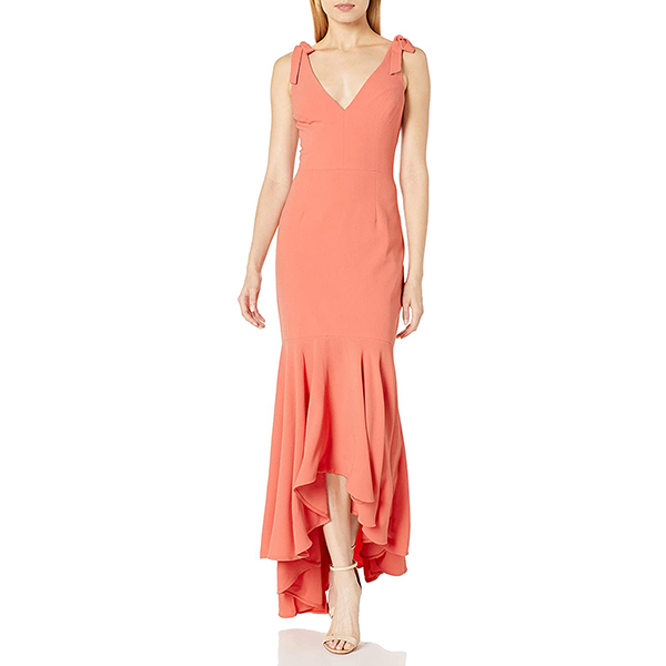 Dress the Population Women’s Julia Plunging Hi-lo Sleeveless Stretch Gown Dress