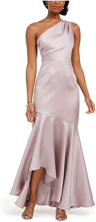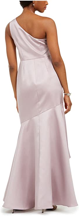 This long mikado dress features a one shoulder neckline and a high and low mermaid skirt.