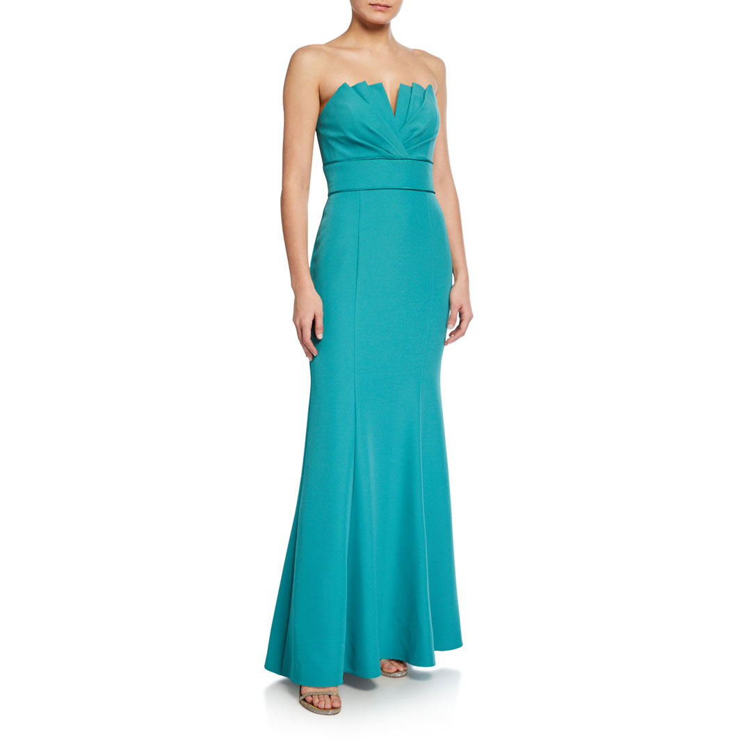 Strapless ruffle back gown