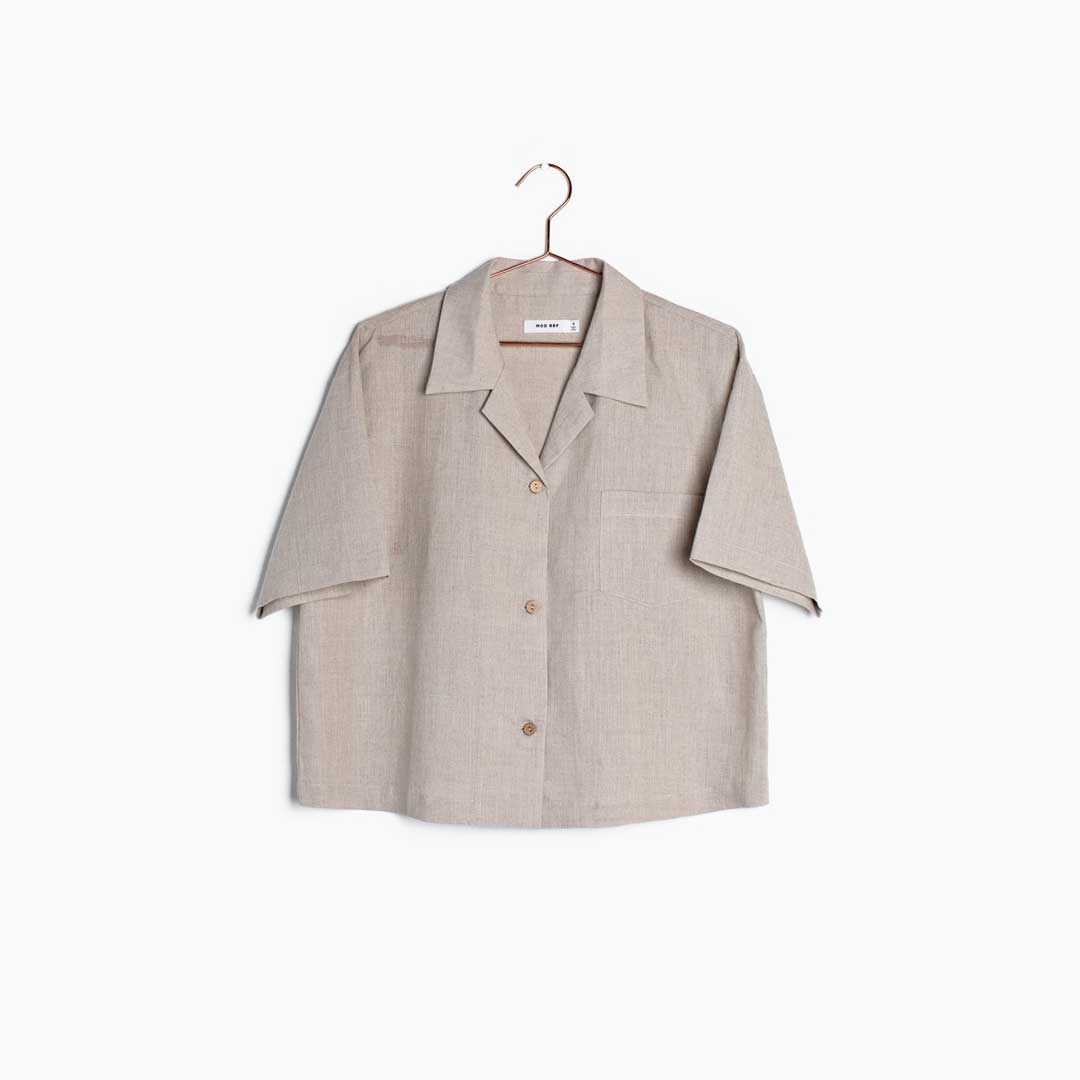 Lightweight linen button up shirt featuring a collar and side pocket – perfect for hot Summer days! Pair this top with the matching bottoms to this set!