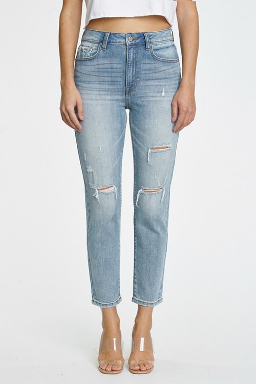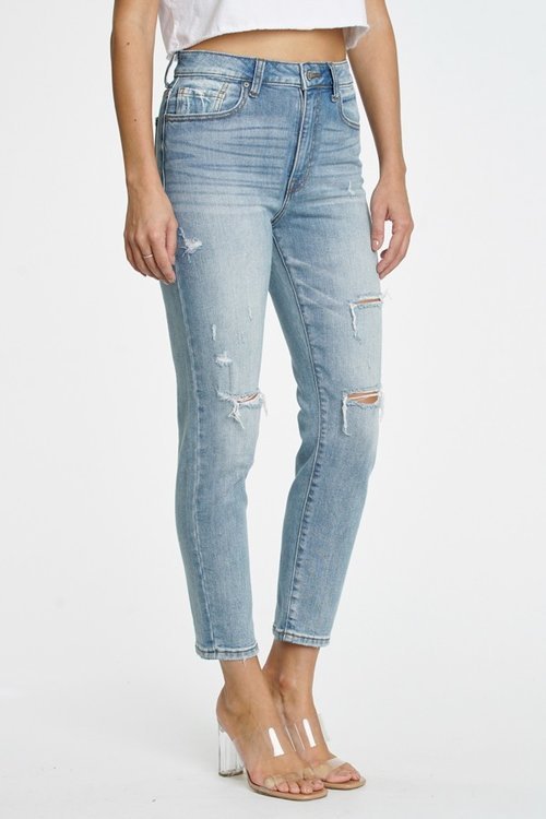 EUNINAtobi high rise relaxed crop with distressed details, ligh fading and five pocket design