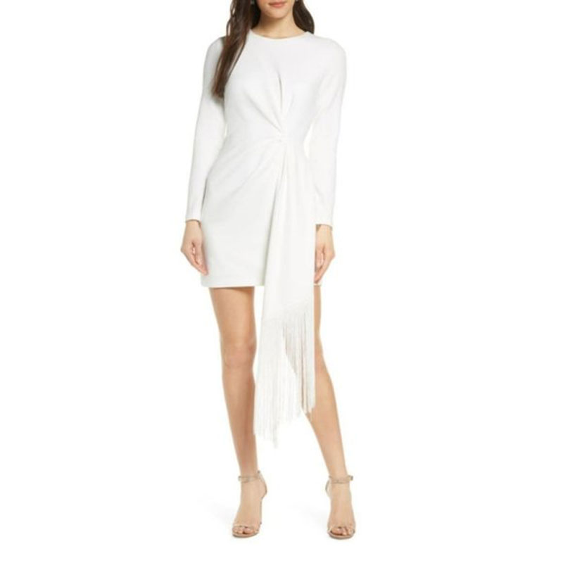 New One33 Social Twist Fringe Long Sleeve Cocktail