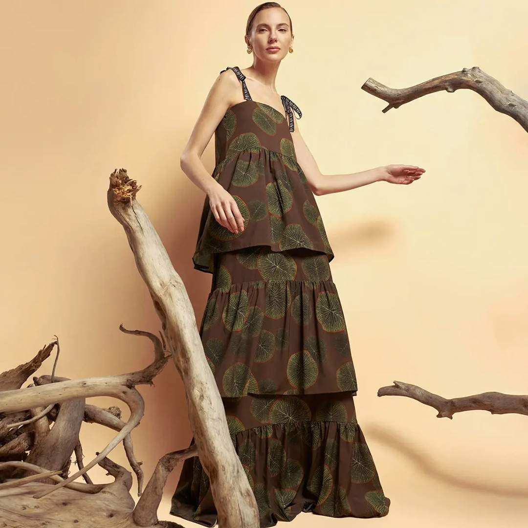 Nenufar Print, Long Design, Adjustable Straps, Ruffle Design