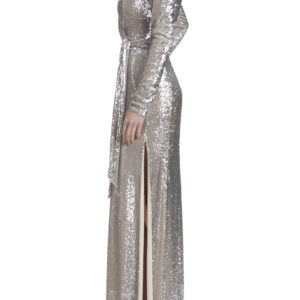 RUNWAY LONG SLEEVE WRAP SEQUIN GOWN